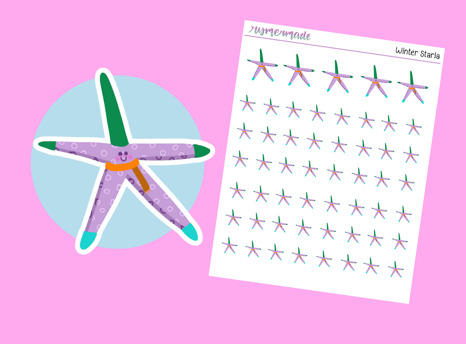 Meet Starla! The Rymermade mascot who is just a little starfish in a whole ocean of joy. These character stickers are perfect for your planner - I use mine for memory planning! This listing is for a set pf 53 stickers of Starla wrapped up in her Winter scarf, hat and gloves. All of my stickers have been completely hand drawn and hand lettered by Rymermade and you cannot buy these kits or this art anywhere else. Each sheet is 9cm x 12.2cm.