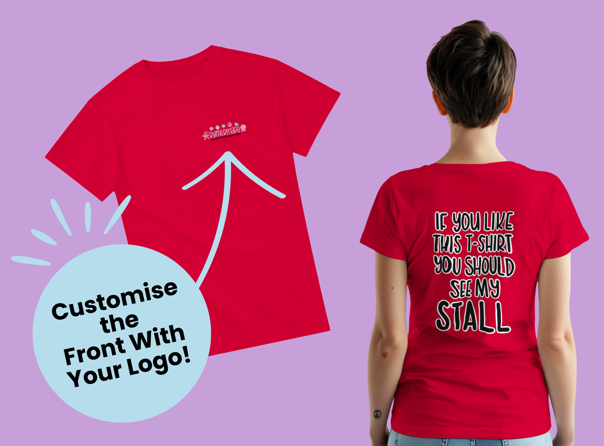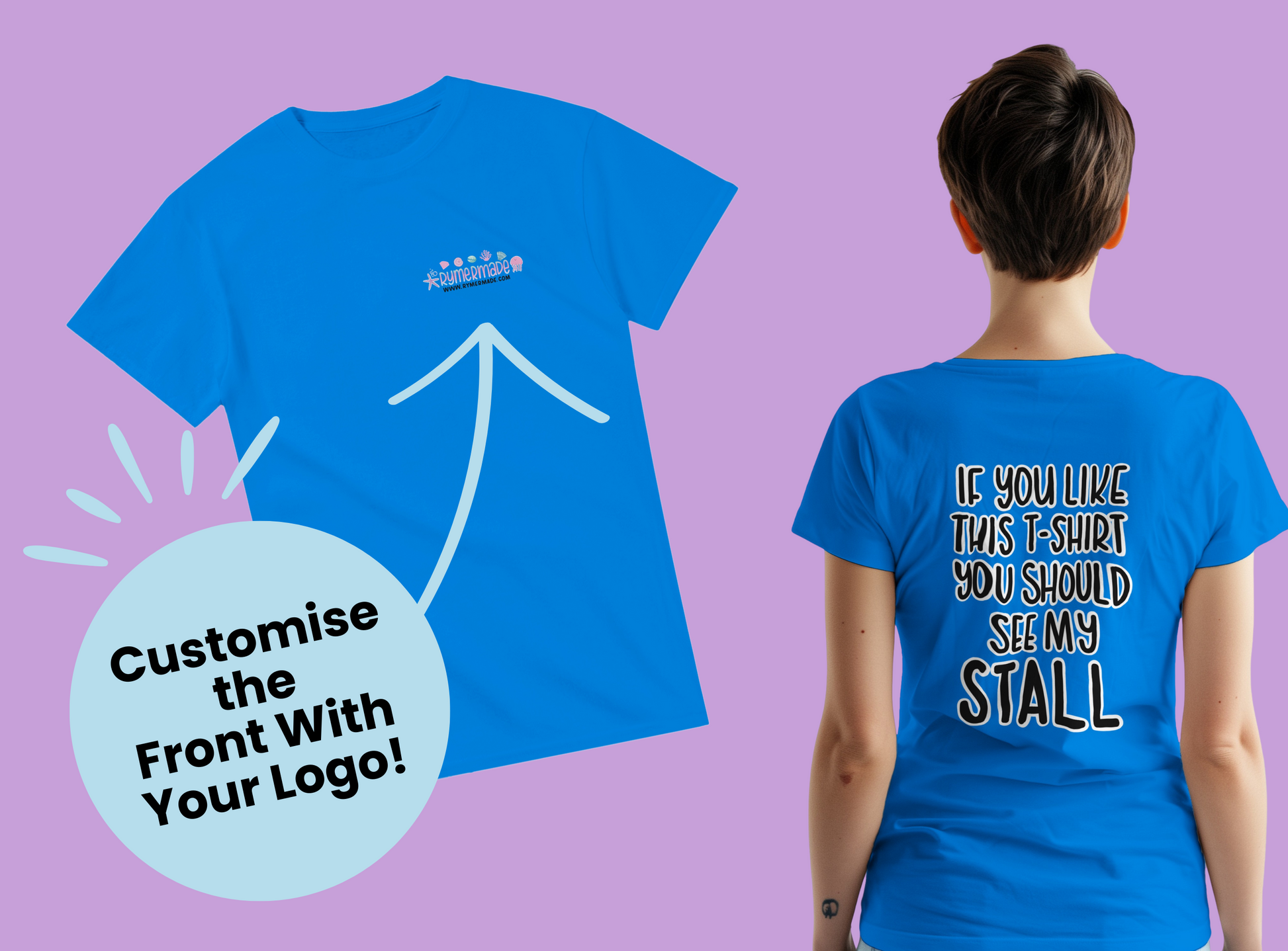 As small business owners many of us are accustomed to hosting stalls at craft fairs and planner events. This is the perfect t-shirt as it ensures that even when you step away from your stall, you are advertising! The back of the t-shirt reads 'if you like this t-shirt you should see my stall' and the front can be customised to include your own logo on the breast pocket.